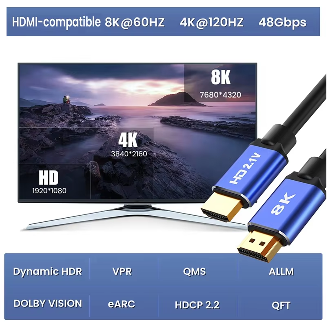 Cable Hdmi 8K 4K 48Gbps Hd V2.1 Premium 1.5Mts