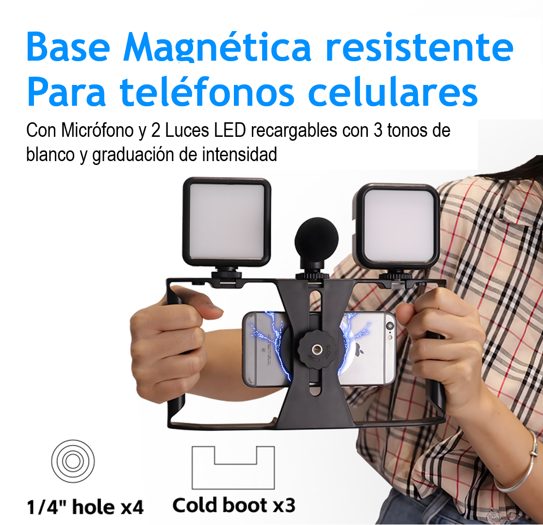Estabilizador De Telefono Jaula Con Luz Led Y Microfono